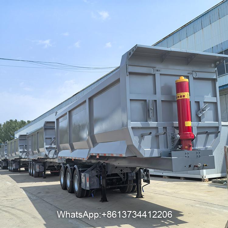 The three-axle dump semi-trailer for sale is a trailer designed for transporting bulk materials. It is equipped with three axles, which can provide better weight distribution and stability, especially when transporting heavy loads. This design helps reduce tire wear and improves handling performance. The dump semi-trailer uses a hydraulic lifting system, which can quickly tilt the cargo compartment for automatic unloading, and is suitable for bulk materials such as sand, coal, and grain. Compared with traditional manual or mechanical unloading, the unloading speed is several times faster, which is especially suitable for scenes such as construction sites and mining areas with frequent loading and unloading, greatly reducing time costs and labor requirements.